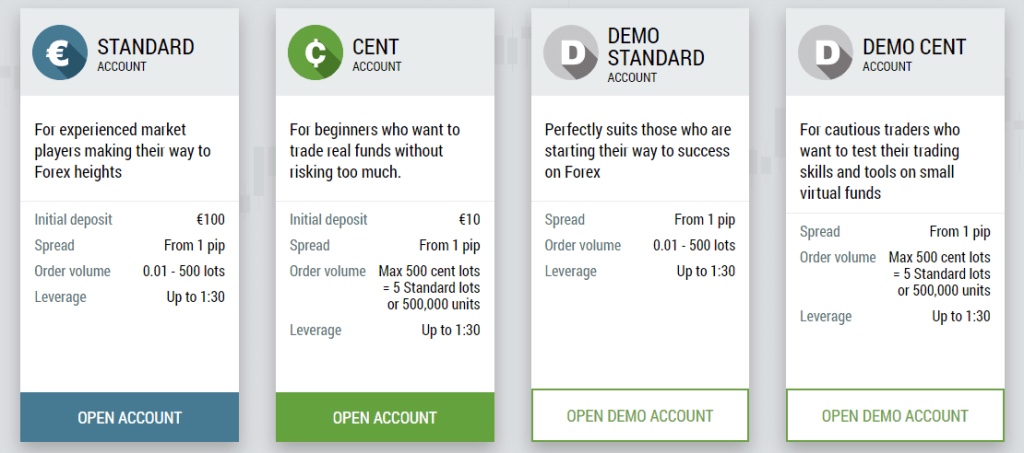 The account types at FBS offer both demo and live trading accounts that give exactly what you may look for, regardless of the level of the experience. While opening an account you may choose between Standard Account and Cent Account, which is a perfect option for the beginners due to its much lower requirements and risks involved.