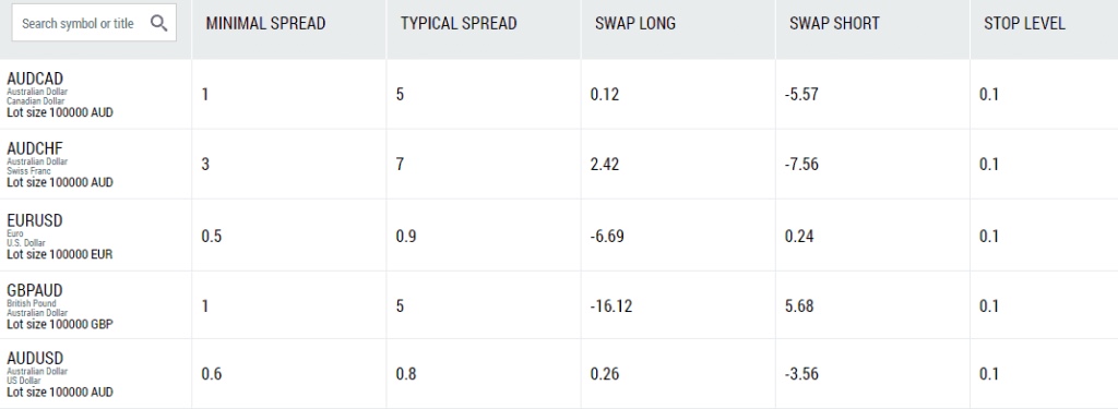 Since there are two account types, so you will have an option either to trade with Standard spread starting from 1 pip, or while trading with Cent Account be offered with tight spread. Thus, typical spread on Standard account for EUR/USD pair is 0.9, and Cent Account EUR/USD spread is 3 pips. You may see below more examples of some spreads and conditions on rollover below, as well compare FBS fees to another broker IC Markets