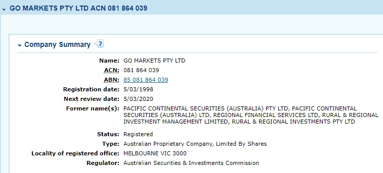The first thing to check before continuing broker GO markets review is its license and applicable registrations which ensure a safe trading environment. GO Markets is authorized to operate financial services under the Australian Financial Services Licence, known worldwide as ASIC.